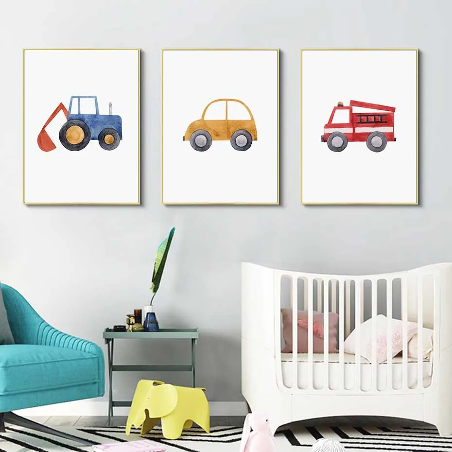 Милая машинка для мальчиков синий трактор пожарная машина картины на холсте настенные картины подарочные плакаты и принты для детской комнаты домашний декор