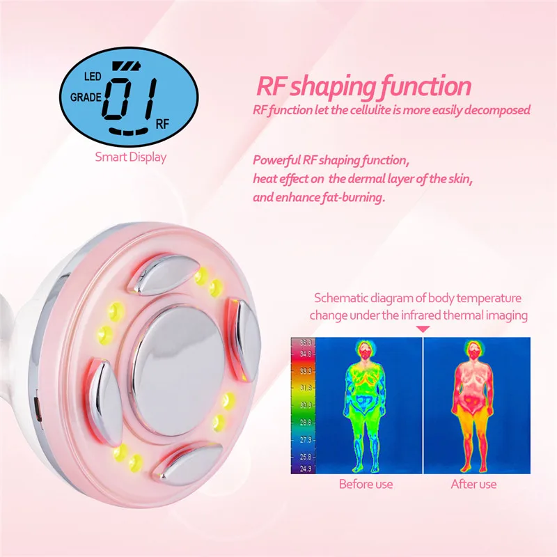 Функция формирования RF: мощная функция RF может сделать слой кожи дермы производим высокий тепловой эффект и улучшает сжигание жира.