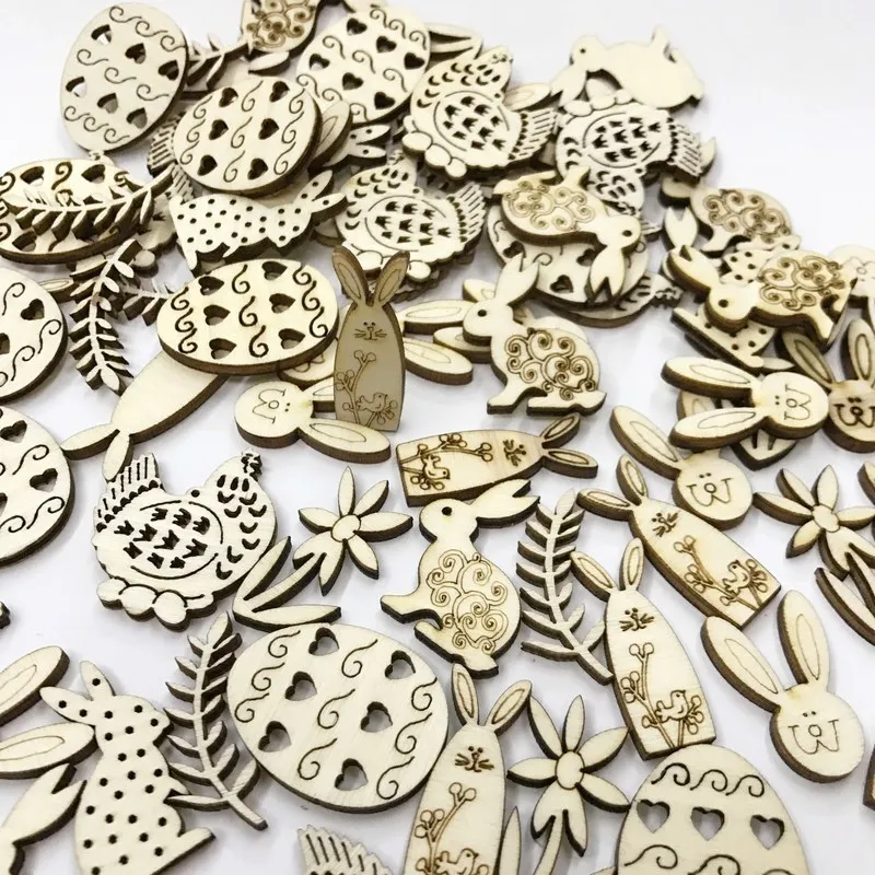 50 шт. Смешанные Формы пасхальные деревянные яйца деревянные Висячие Подвески пасхальные вечерние принадлежности ремесло DIY орнамент висячая бирка счастливый пасхальный декор