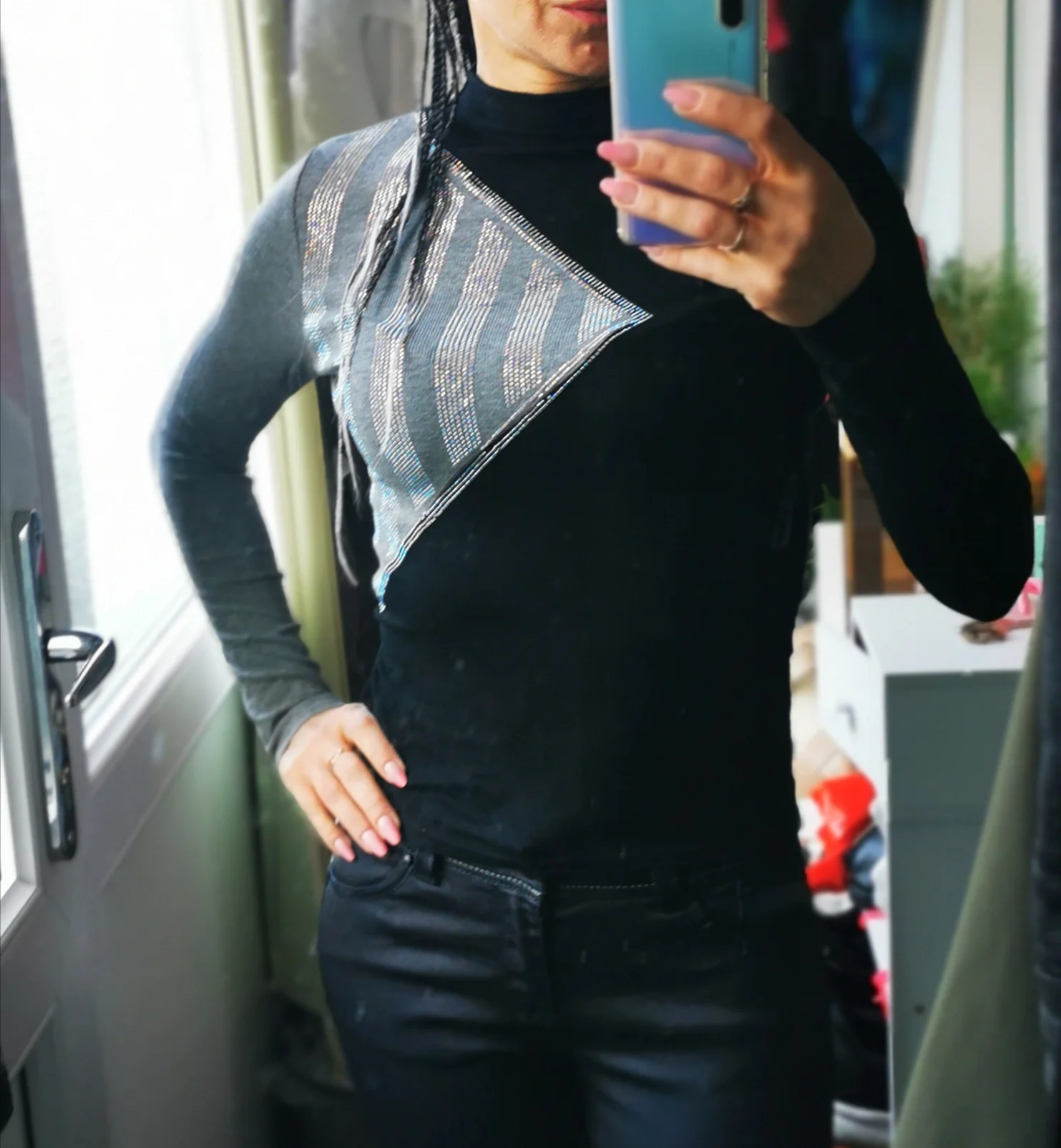 Выглядит хорошо. Но Стразы в некоторых местах отсутствуют. Я чувствую, что они сойдут после первой стирки.