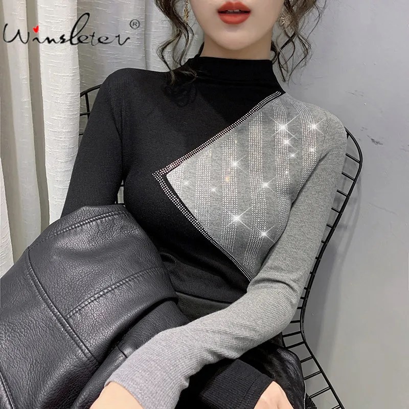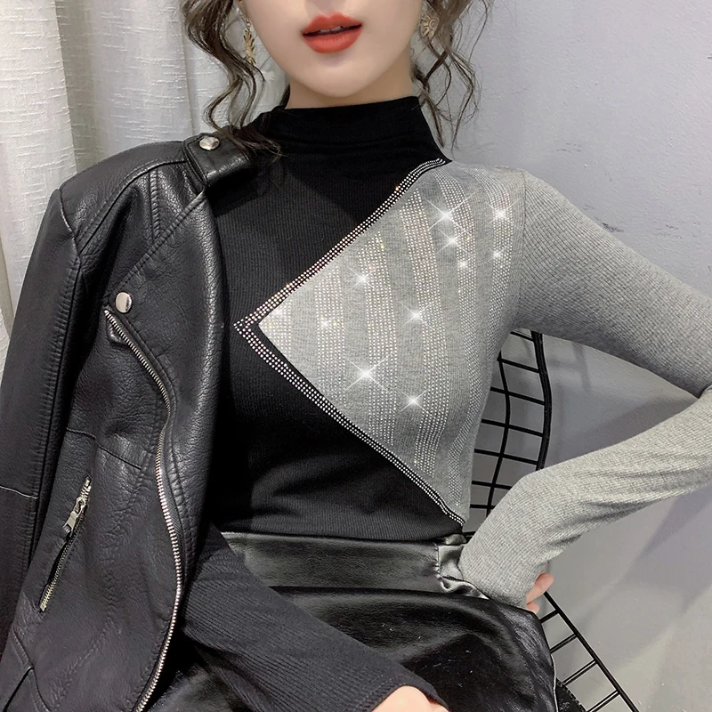 Футболка женская хлопковая, с длинным рукавом, в стиле пэчворк, T01406Y