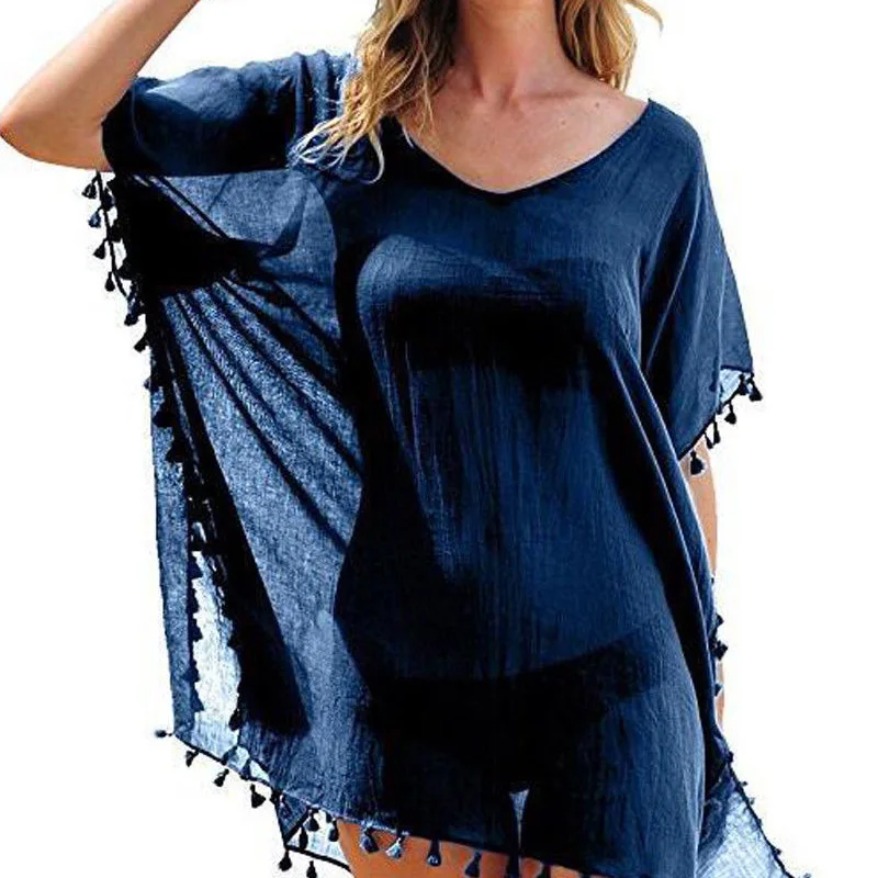 Женское пляжное однотонное платье для плавания, накидка на бикини с кисточками, летняя пляжная одежда, праздничный сарафан, одежда для купания от солнца