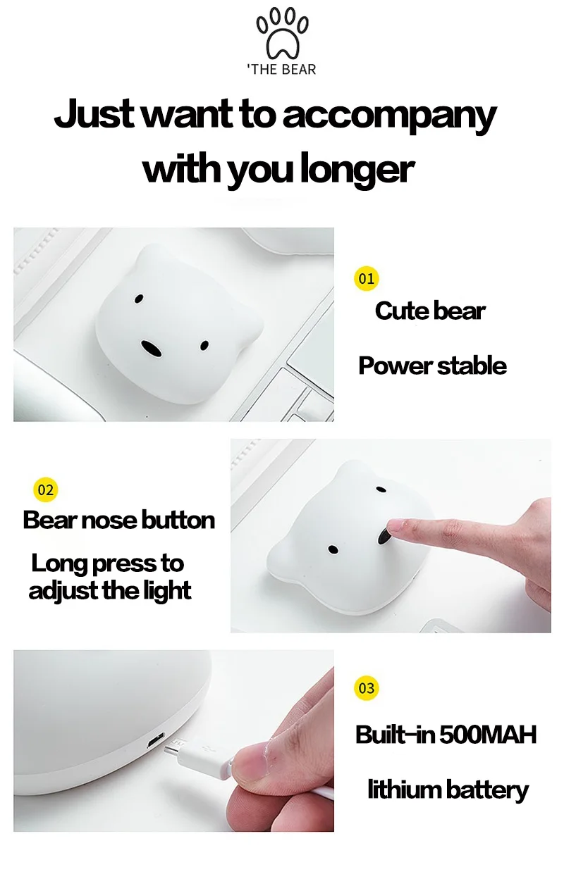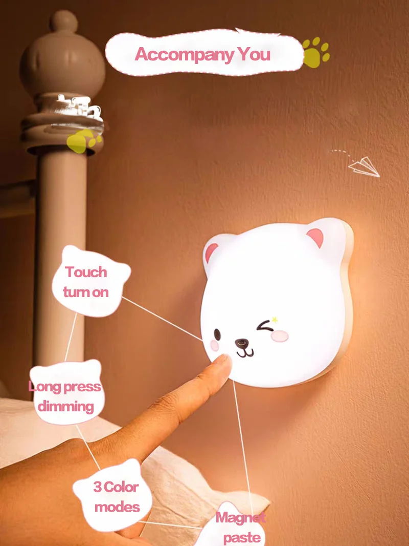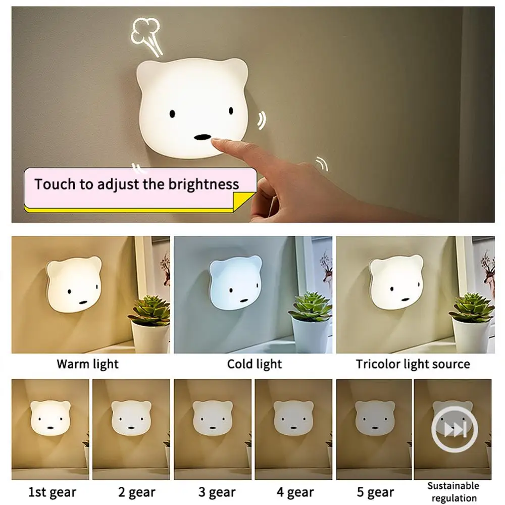 Ночной светильник, перезаряжаемый по USB, сенсорный датчик, съемный настенный светильник, портативный милый медведь, настольная лампа для спальни, кабинета, лестницы, декоративная