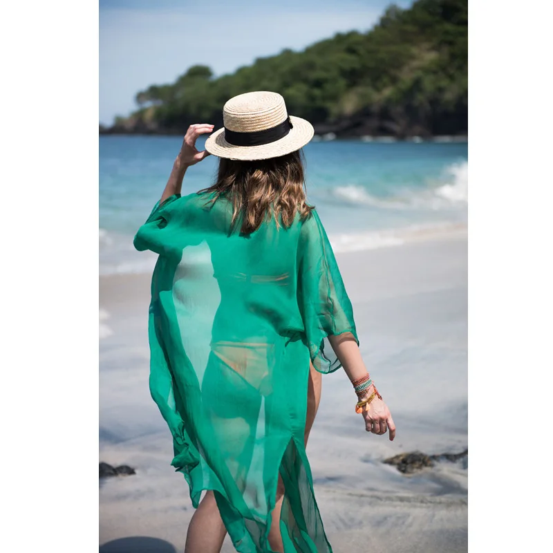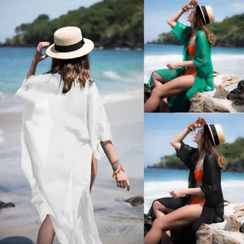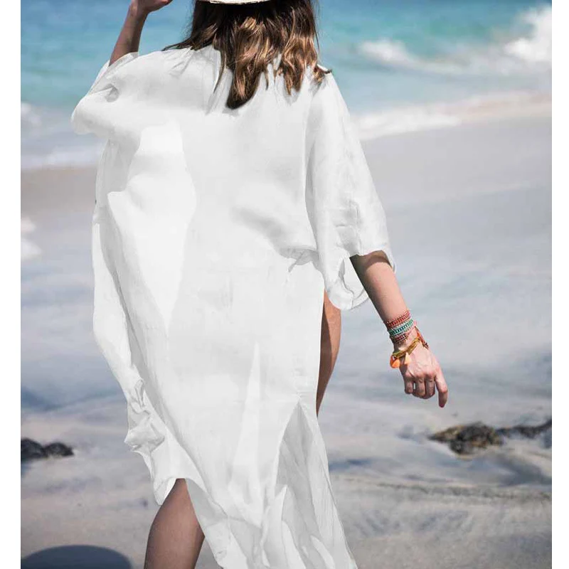 Новые летние однотонные накидки для бикини с длинным рукавом, женский пляжный длинный кафтан Maix, пляжная одежда, праздничный Сарафан