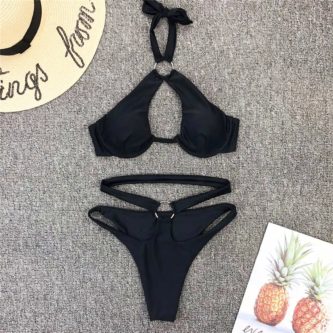 Сексуальное Бразильское бикини с металлическими кольцами, 2021, жен...