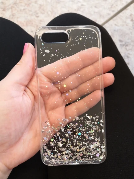 Очень красивый чехол. Мягкий силикон. Всё разьемы совпадают. Кнопки не передавливают. Единственное замечание по картинке мне показалось что есть слой жидкости в которой и находятся эти блёстки. На что меня подталкивало и толщина заднего силикона который создаёт больший обьем телефона (что видно по фото). Но за такую цену с бесплатной доставкой грех жаловаться ✨ps блёстки сияют бомбически!!!