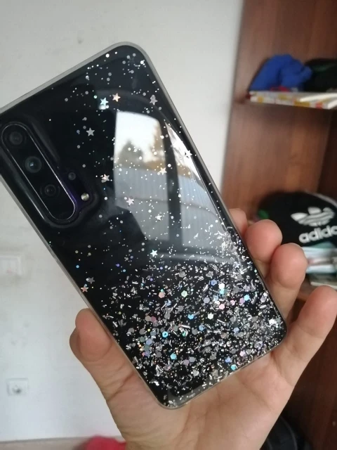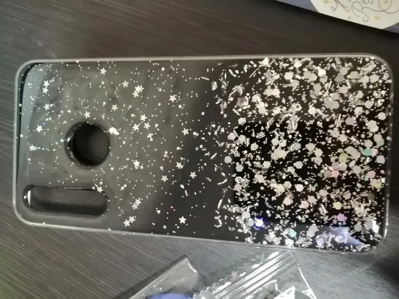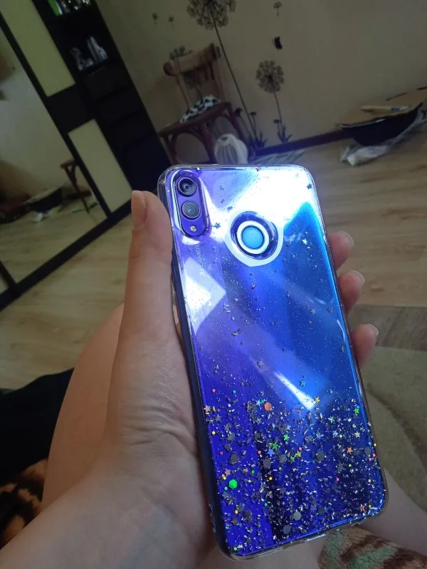 Тонкий, прозрачный бампер, блёстки закреплены, не пересыпаются. Размер отлично подошёл на Хонор 30.