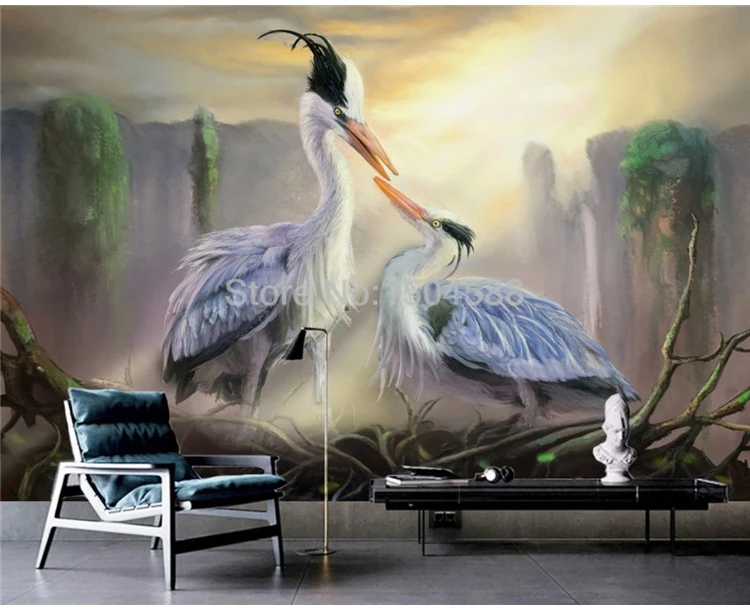 3D обои, современное искусство, абстрактная картина маслом, журавль, картины, гостиная, ТВ, диван, спальня, фон, Настенный декор, 3 D