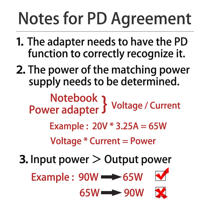 Убедитесь, что мощность вашего адаптера USB Type C (вольт и ампер) не ниже входа вашего ноутбука (вы можете проверить его в нижней части ноутбука). Например, вход для Вашего ноутбука составляет 19 в, 3,42 А, 65 Вт, тогда ваш адаптер USB-C не ниже 65 Вт. Некоторые клиенты часто используют свой usb c телефонный адаптер для зарядки ноутбука, очень маленькая мощность, конечно, не работает. Обратите внимание, что не все адаптеры USB Type-C подходят для вашего ноутбука.