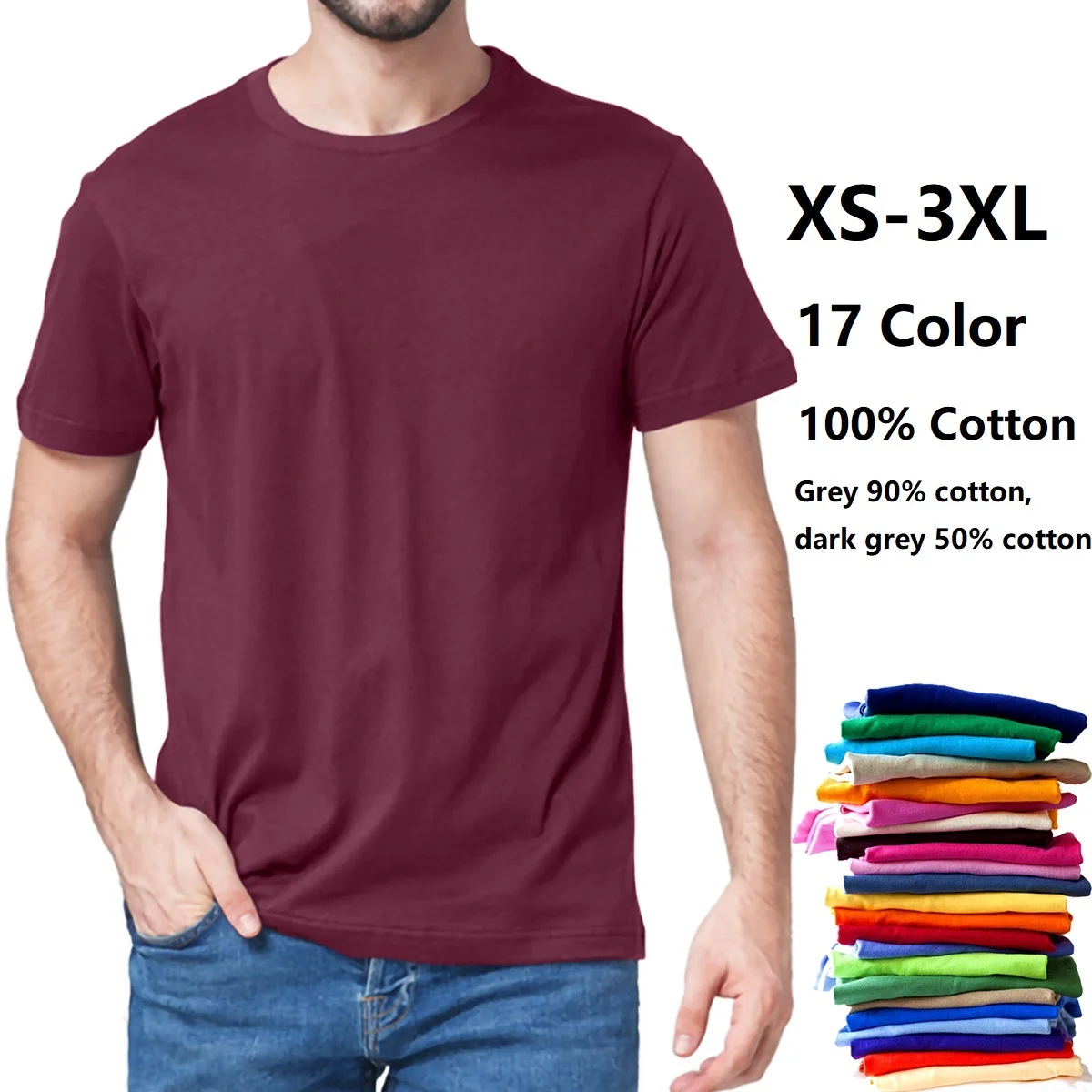 Футболка мужская, из 100% хлопка, с круглым вырезом и коротким рукавом