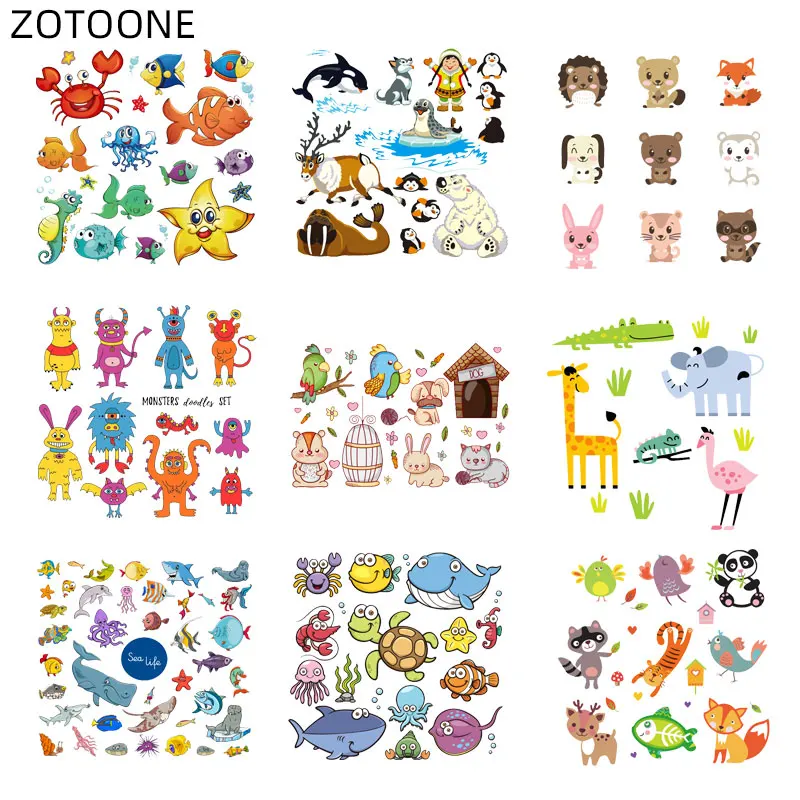 ZOTOONE гладить на Веселые костюмы Животных Патчи милый кот наклейка с медведем переводы для одежды Diy нашивка в форме рыбы передачи тепла аксессуар аппликации