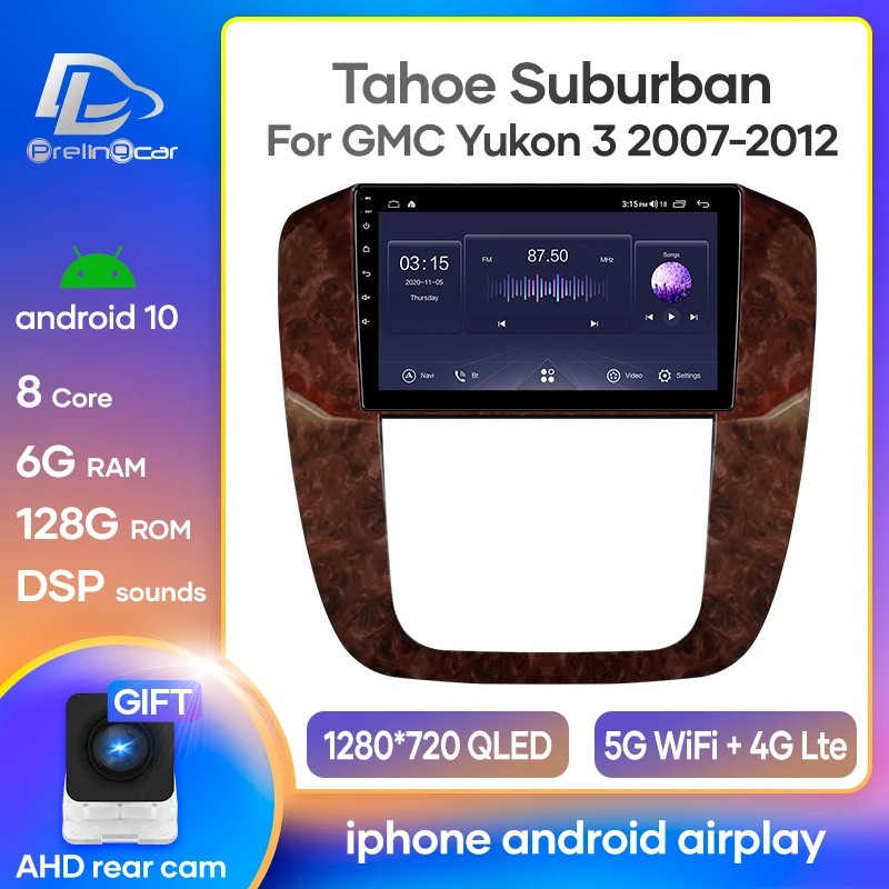 Автомагнитола Prelingcar для GMC SIERRA tahoe yukon 3, мультимедийный видеоплеер на Android 10, без DVD, с GPS, восьмиядерным процессором, типоразмер 2 din