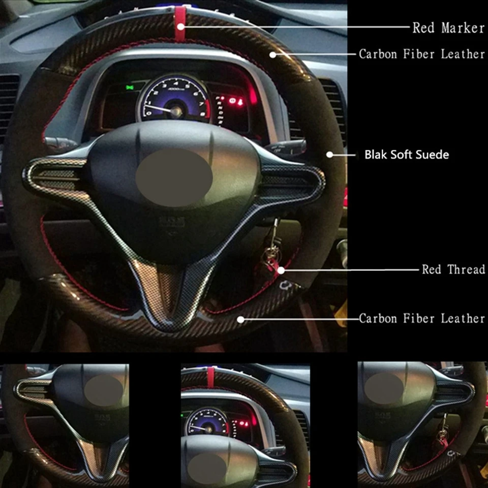 Ручное шитье углеродного волокна Черная замша чехол рулевого колеса...