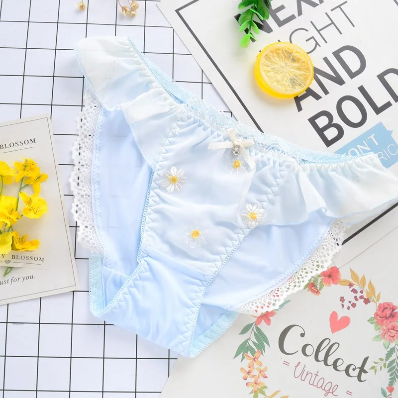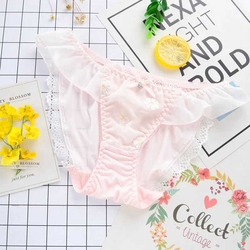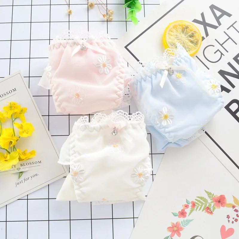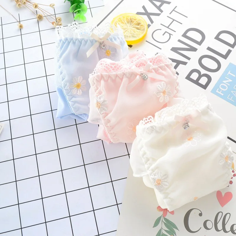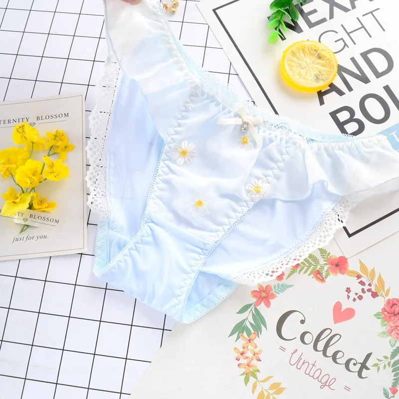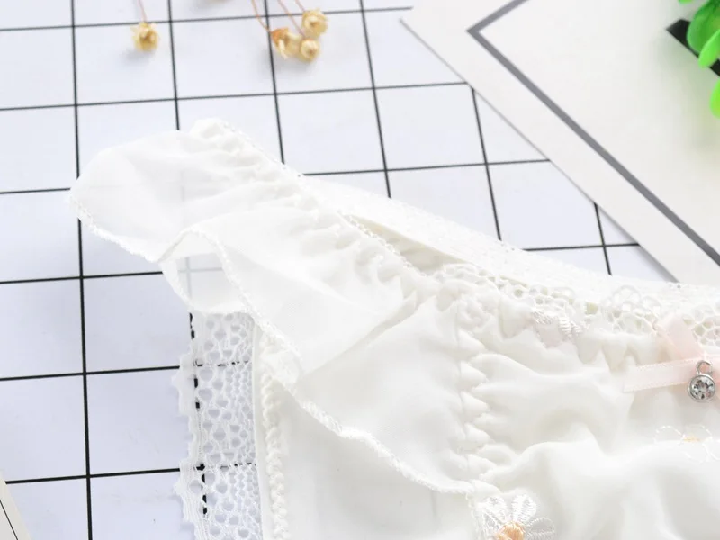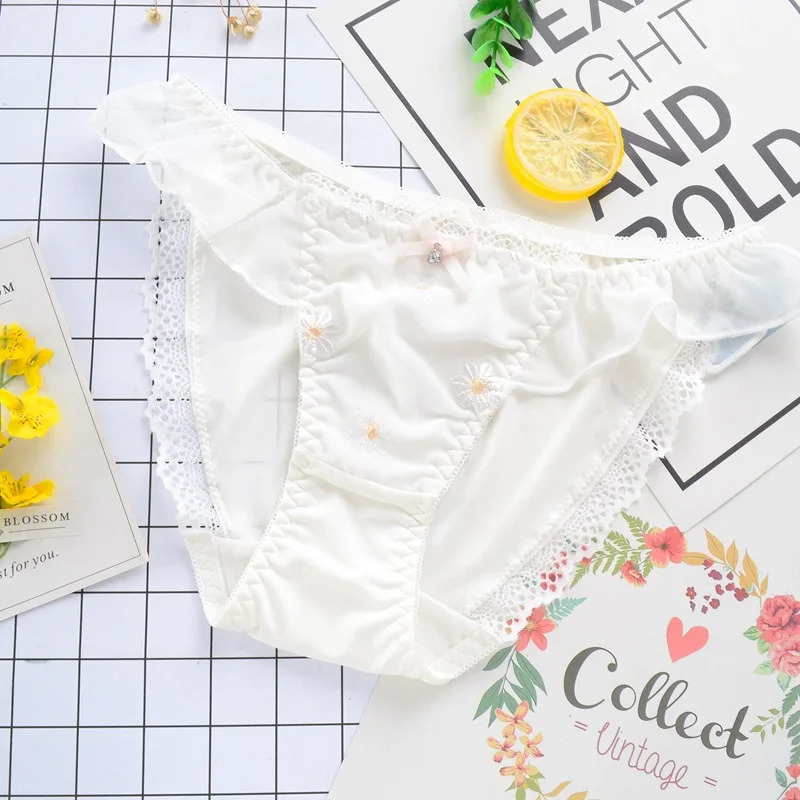 Leecheeхлопковые трусы для молодых девушек, японские трусики из молочного шелка, милое женское нижнее белье с цветочной вышивкой и кружевным бантом, сексуальное нижнее белье
