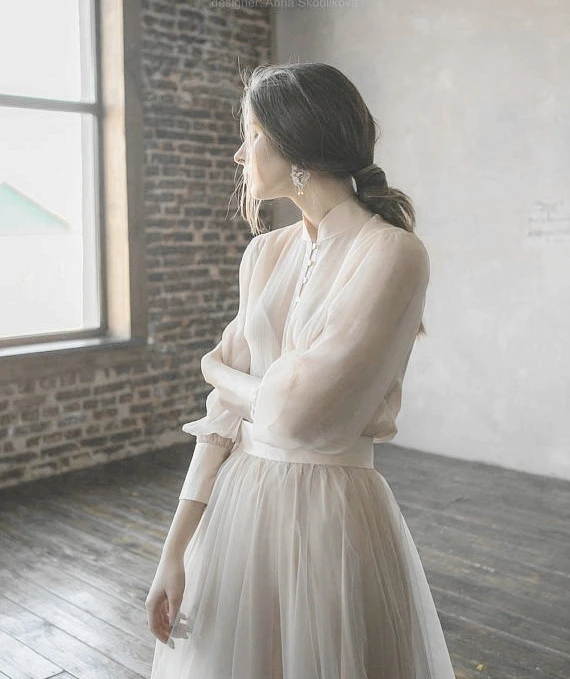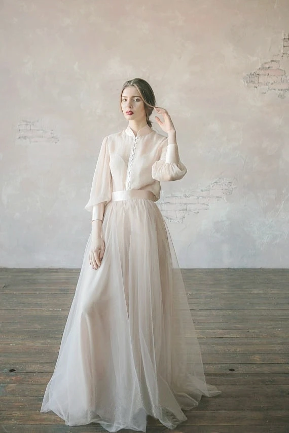 Бежевое Свадебное платье из двух частей в винтажном стиле, свадебное платье, Свадебная вечеринка, реальная фотография, заводская цена