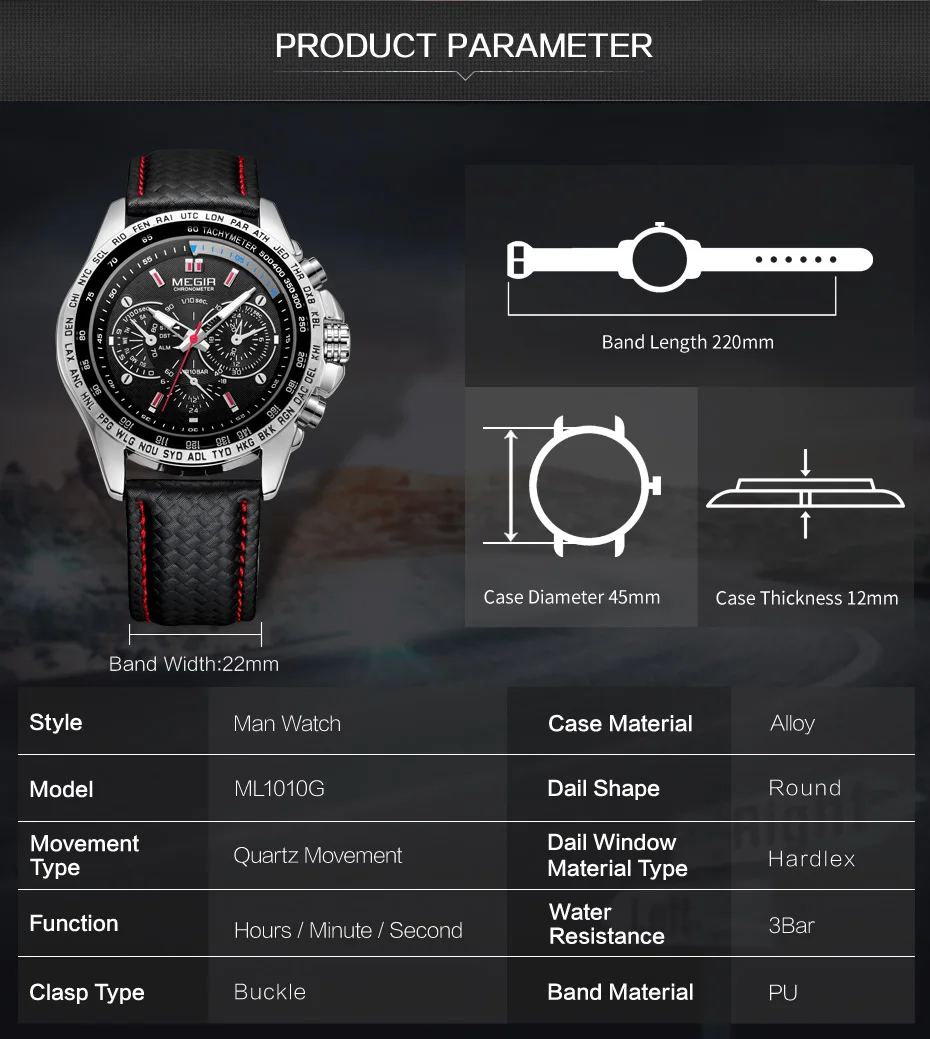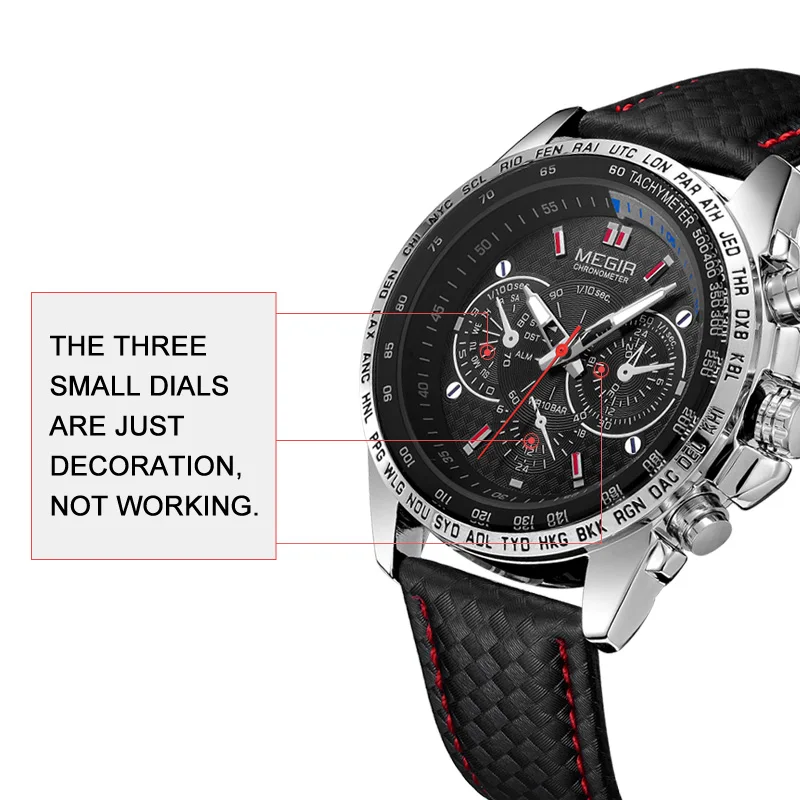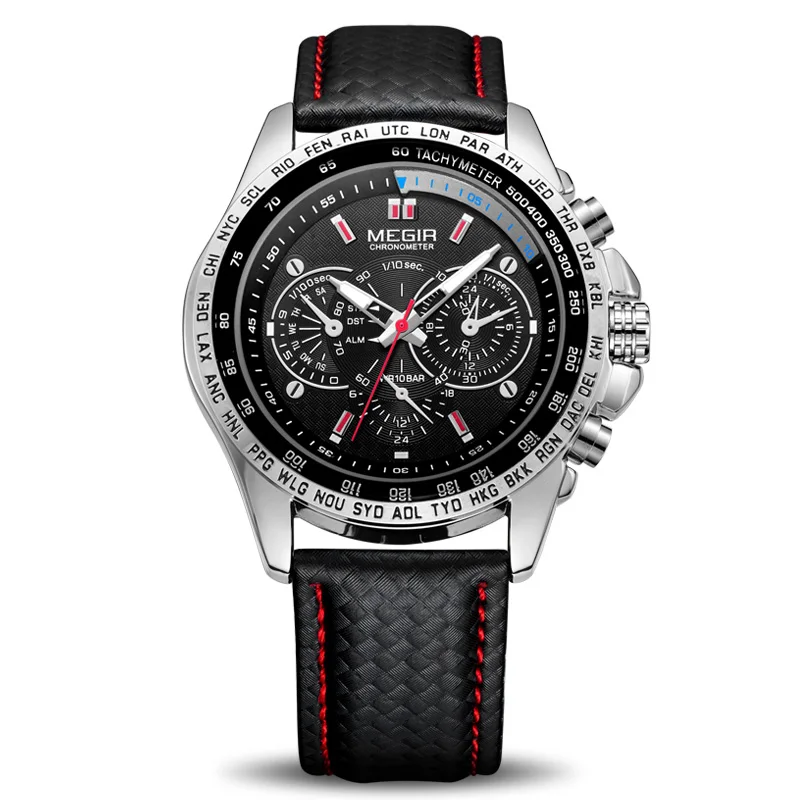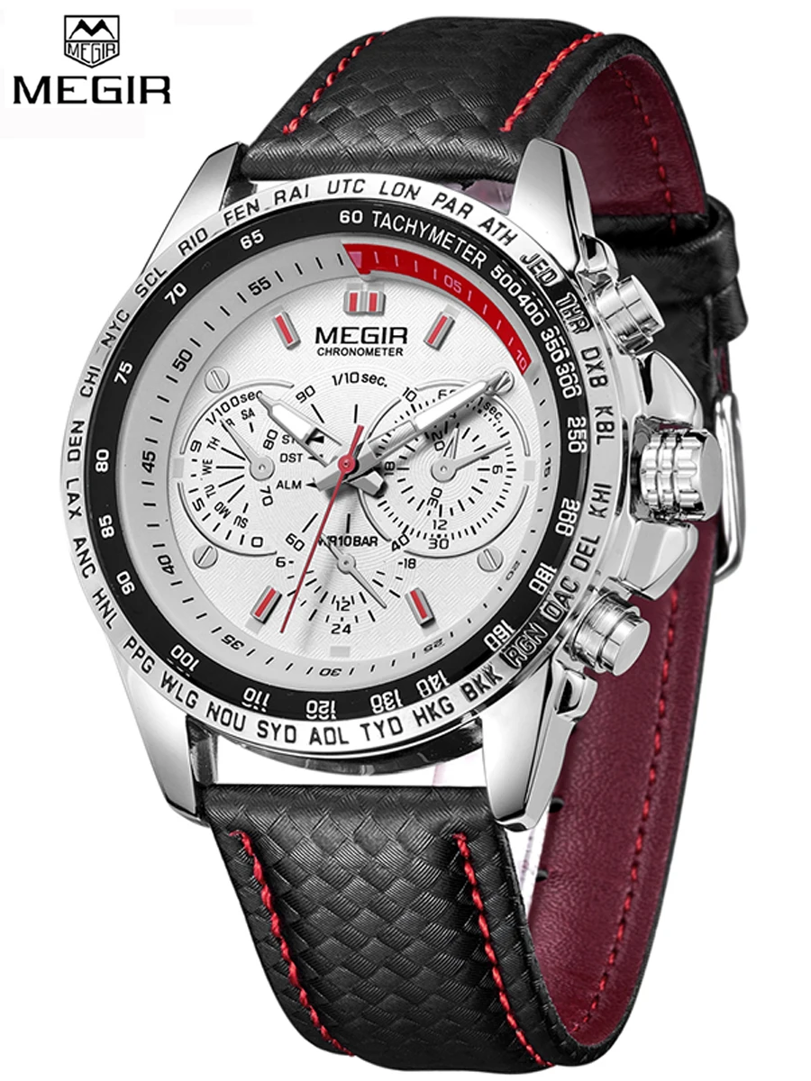 Оригинальные Брендовые мужские часы MEGIR, Роскошные Кварцевые мужские военные часы, повседневные Черные часы с ремешком из ПУ, мужские часы с большим циферблатом Erkek Saat, мужские часы