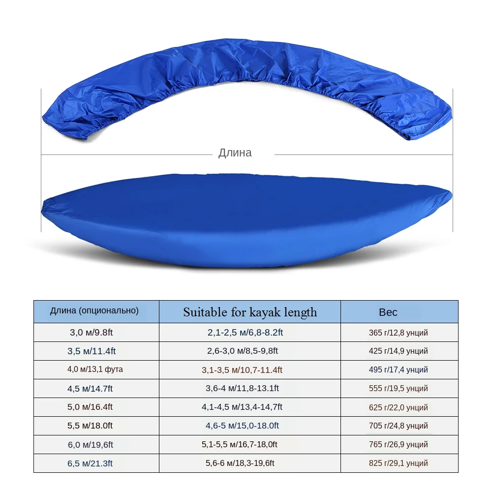 Крышка для хранения каяка для тех, кто хочет сохранить их каяк чистым. Особенности: Защита от ультрафиолета, водонепроницаемость и защита от пыли. Рулон и зажим закрытия регулируется для байдарок. Простота в эксплуатации без необходимости использования каких-либо других инструментов. Обеспечьте большую защиту для вашего Каяка на пляже или на заднем дворе. Технические характеристики: Материал: ткань «Оксфорд» Цвет: серый/синий (опционально) Детали:
