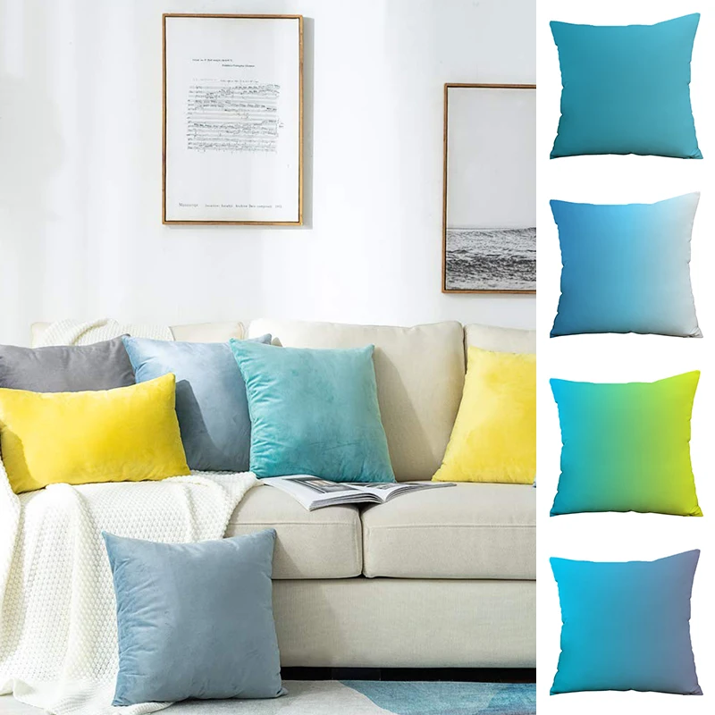 Бархатный Чехол для подушки, градиентный цвет, блестящий чехол для подушки для гостиной, дивана, синие декоративные подушки, скандинавский домашний декор