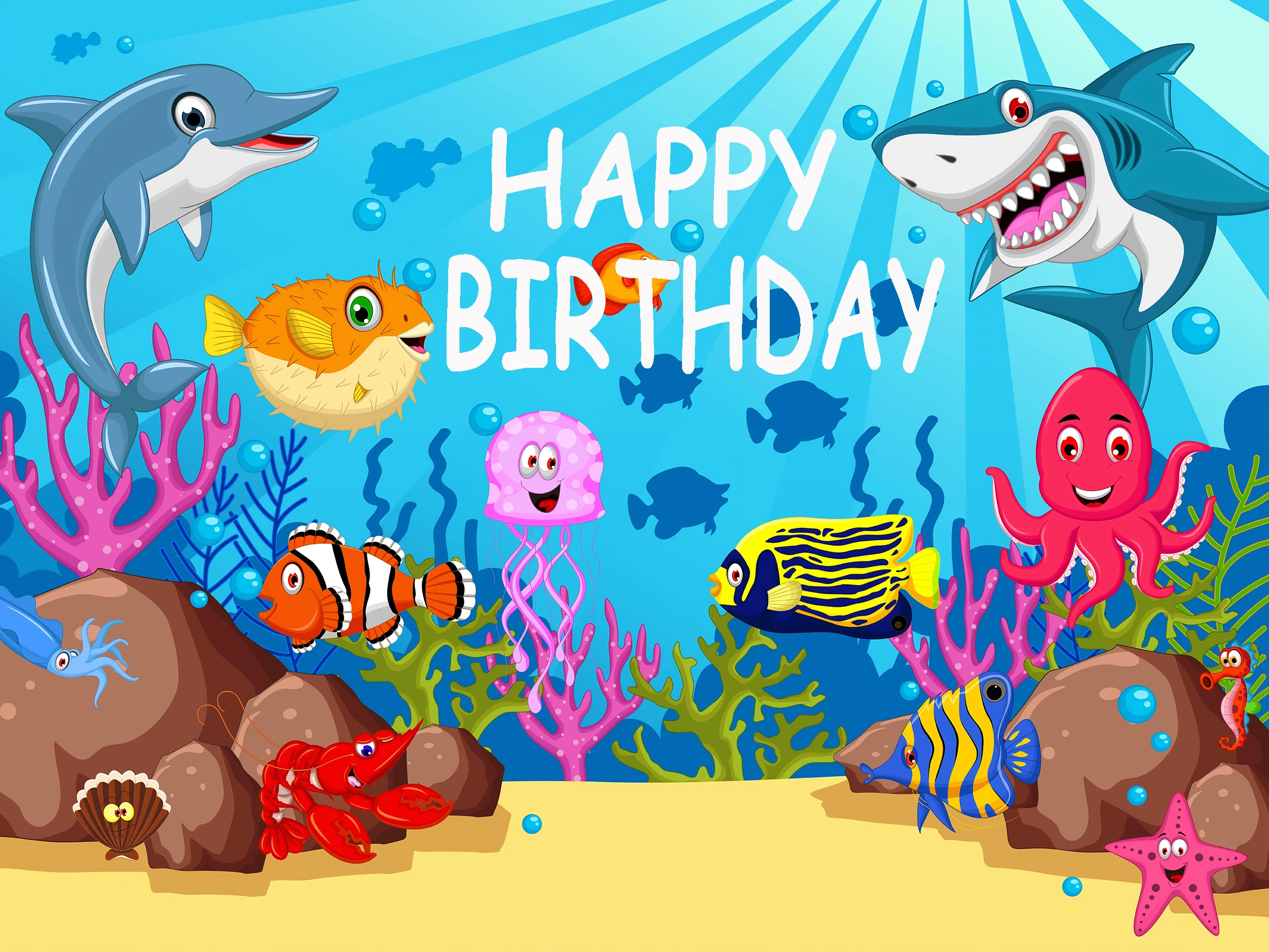 Фон для фотосъемки в фотостудии с изображением акулы на 1-й день рождения