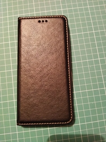 Долгая доставка, полтора месяца. Материалы приятные, сделан качественно. Прорезь-окошко под сенсор отпечатка пальцев всё же маловата под мазолистый палец русского мужика, надо заново попробовать откалибровать сенсор. Есть небольшая царапина на лицевой стороне, не критично. Прострочка, кожзам, сама резиновая форма под телефон очень радуют качеством.