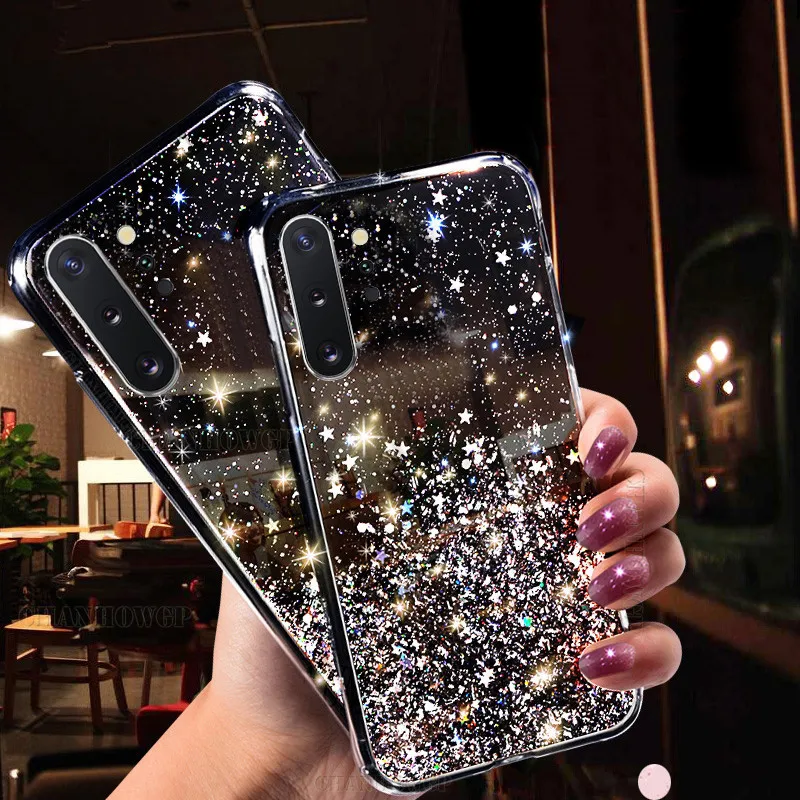 Чехол для Samsung Galaxy Note 10, S10, S9, S8 Plus, A70, A50, A30, A40, A10, A20, A90, A30S, A20E, A2 Core, A7, A9 2018, с блестками и звездами