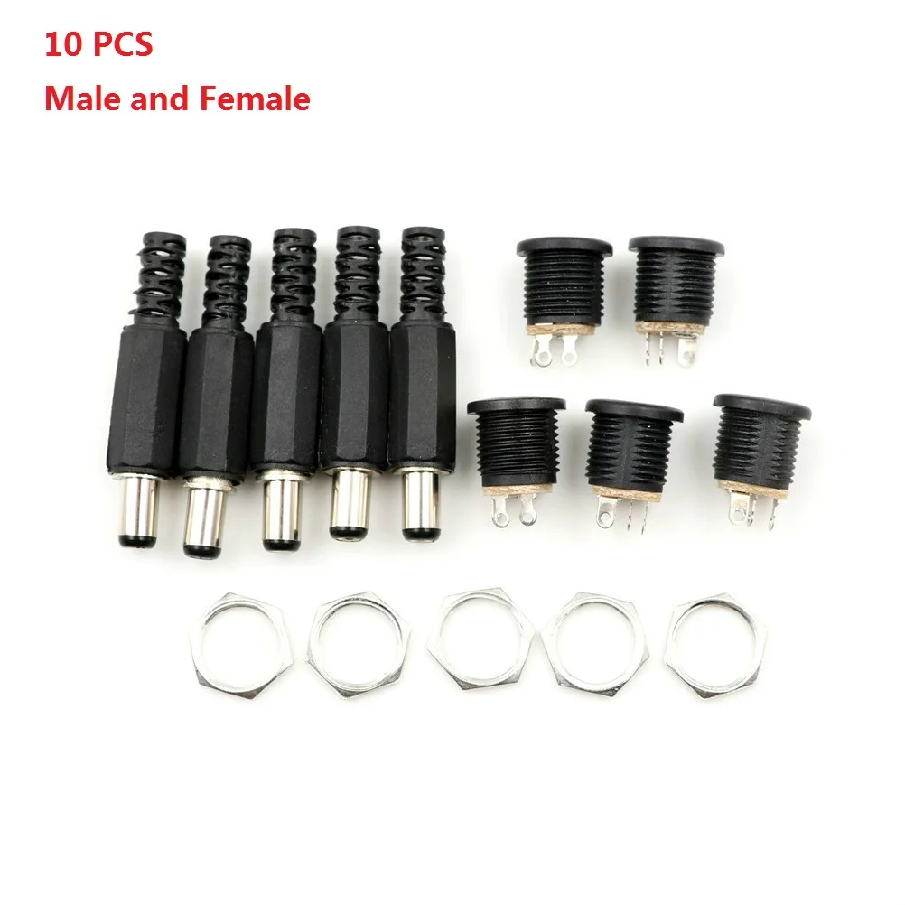 10 шт. DC контакт разъема питания 2,1x5,5 мм Гнездовой разъем Jack + штекер Jack гнездо адаптер PCB Крепление DIY разъем адаптера 2,1X5,5