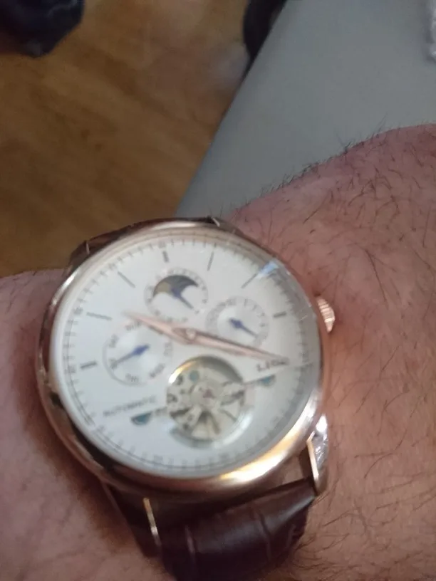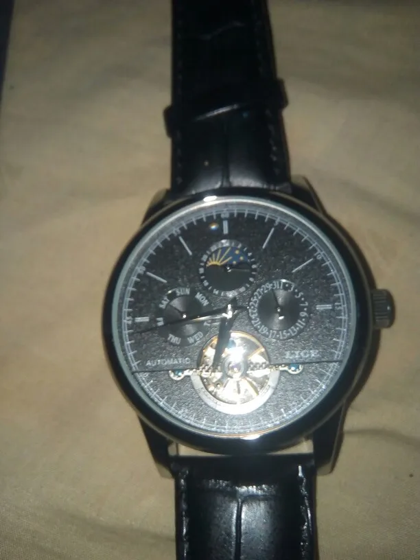 Я влюблен. Турбиния отлично работает. Циферблат с датой и днем недели также отлично работает. Лунная фаза и солнечная фаза правильно выровнены с циферблатом 24 часа. Он был отправлен почти сразу, но потратил два месяца на доставку в Нигерию. В конце концов, я получил отличные часы. Кража по низкой цене
