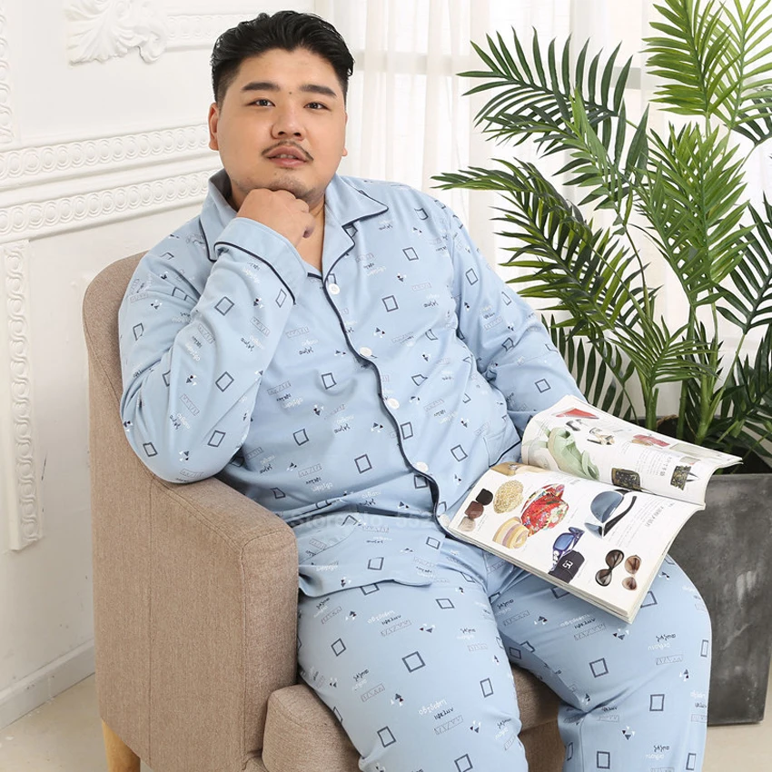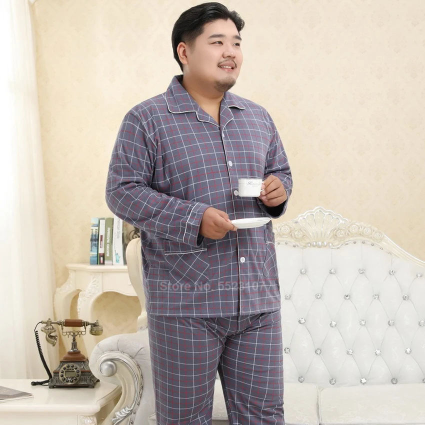 Мужской Хлопковый пижамный комплект размера плюс в клетку, свободный стиль, удобная домашняя одежда, ночная рубашка, пижама, 3XL-5XL
