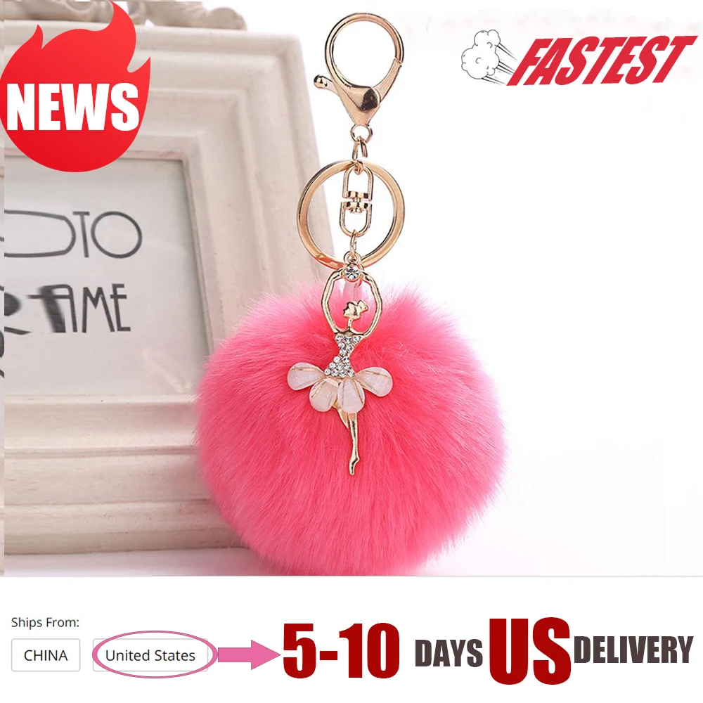 Рождественский милый Хрустальный балетный брелок с помпоном для девочек, брелок с искусственным кроличьим мехом, пушистые буффы, подвески, брелок, модные украшения