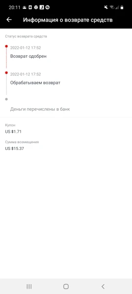 Включено, после того, как и покупатель, и продавец отменят транзакцию с aliexpress года. Или вы можете выбрать замену.