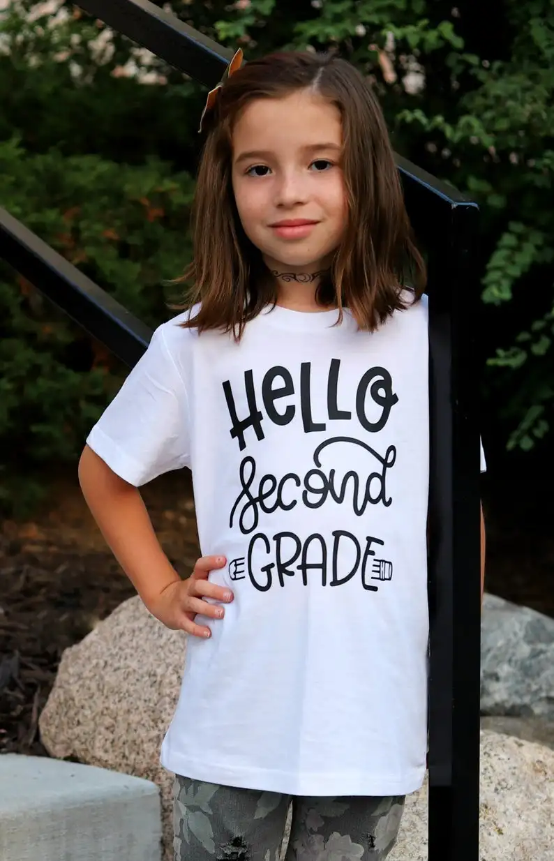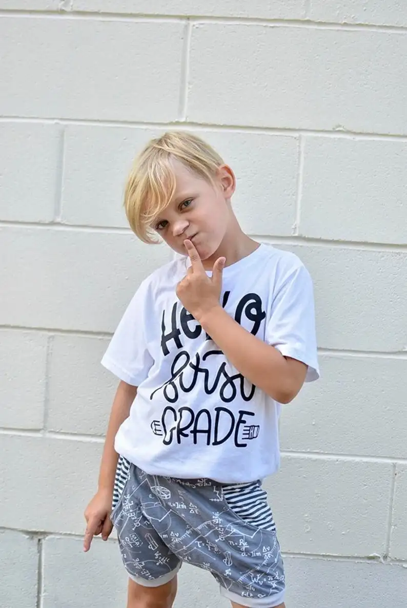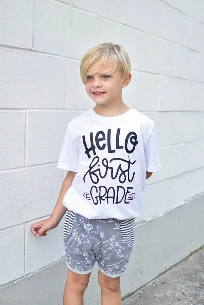 Детская футболка с надписью "Hello First Grade", футболка с надписью "Back To School" для первого дня школы, школьные футболки с фото