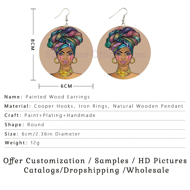 SOMESOOR афро головная Повязка Женская художественная картина деревянные висячие серьги винтажные Африканские Этнические рисунки деревянные Уши висячие для черных подарки