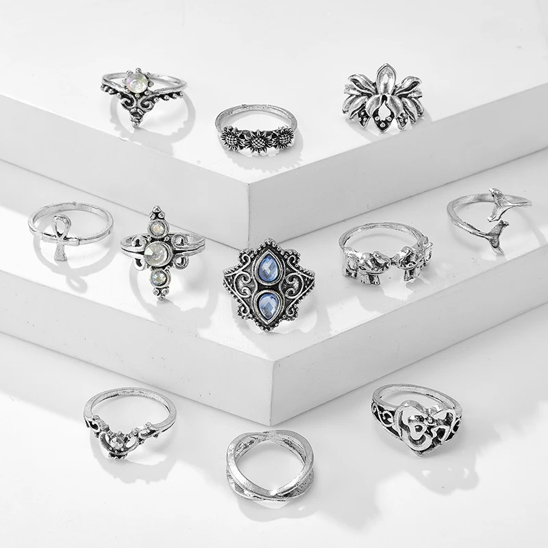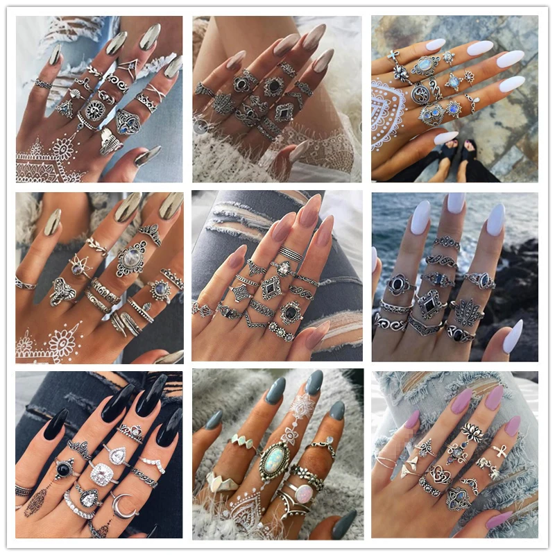 Набор Колец Docona в винтажном стиле для мужчин и женщин, набор колец под античное серебро в богемном стиле с геометрическим дизайном, Декор лист лотоса, Прозрачный кристаллический камень, 20 видов