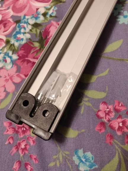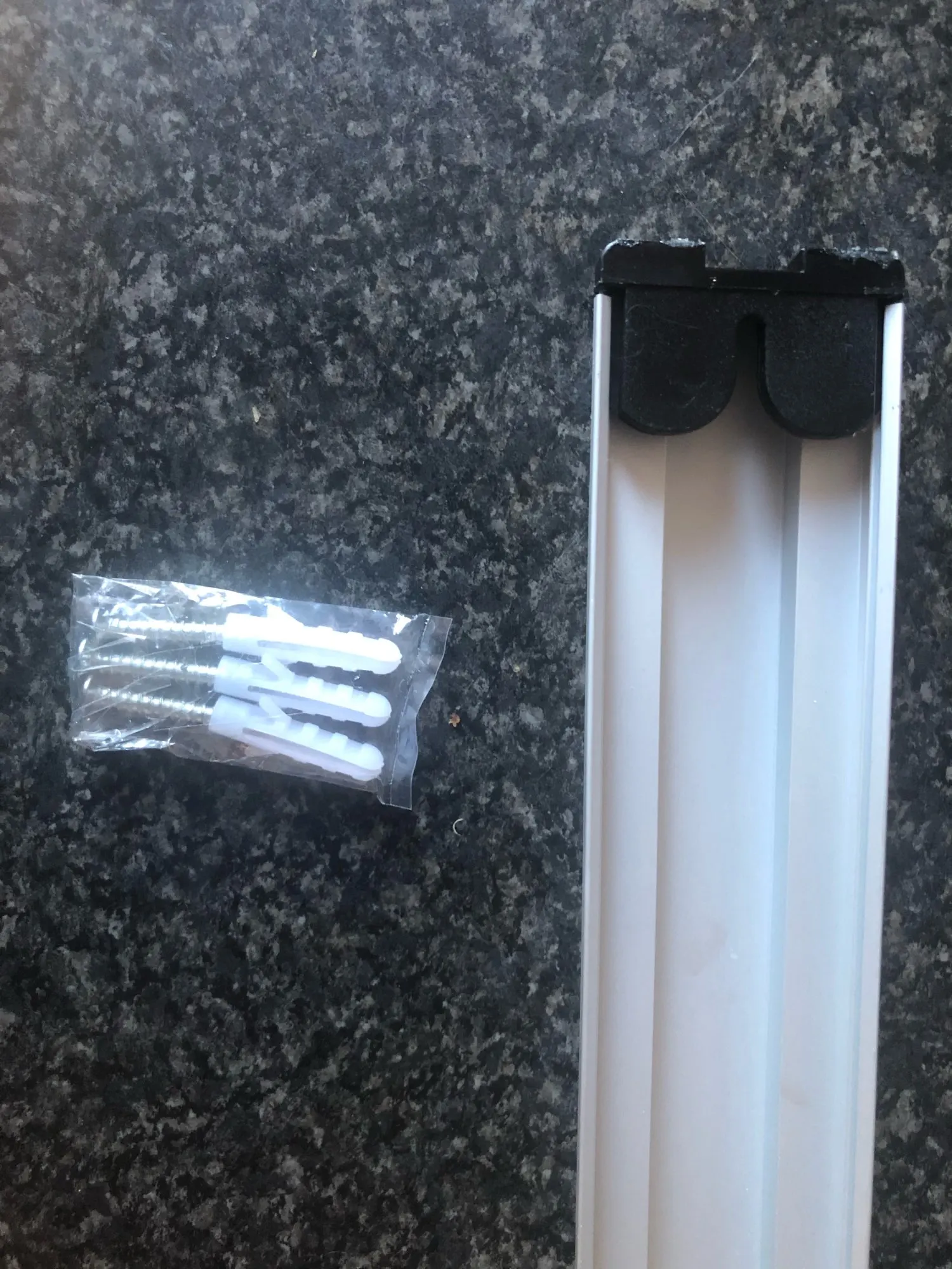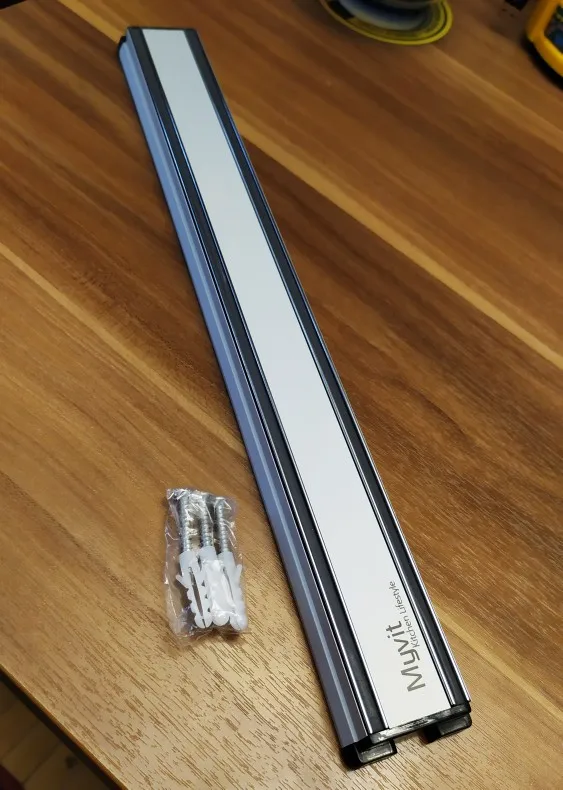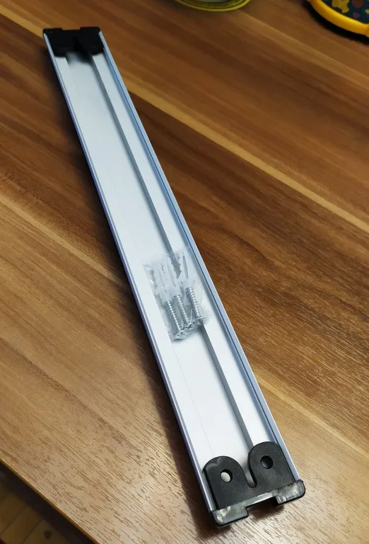 Отличный держатель. В комплекте и винты. Странно, что одна из деталей не была просверлена. Брачок. Но это, в общем решилось приложенными саморезами. Единственное, советую, померить необходимую длину. Я заказал побольше, но когда понял, куда всё-таки хочу повесить и как, то уже не очень хотелось морочиться и резать.