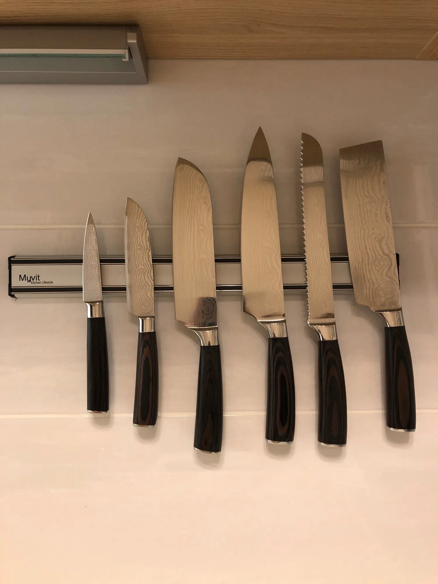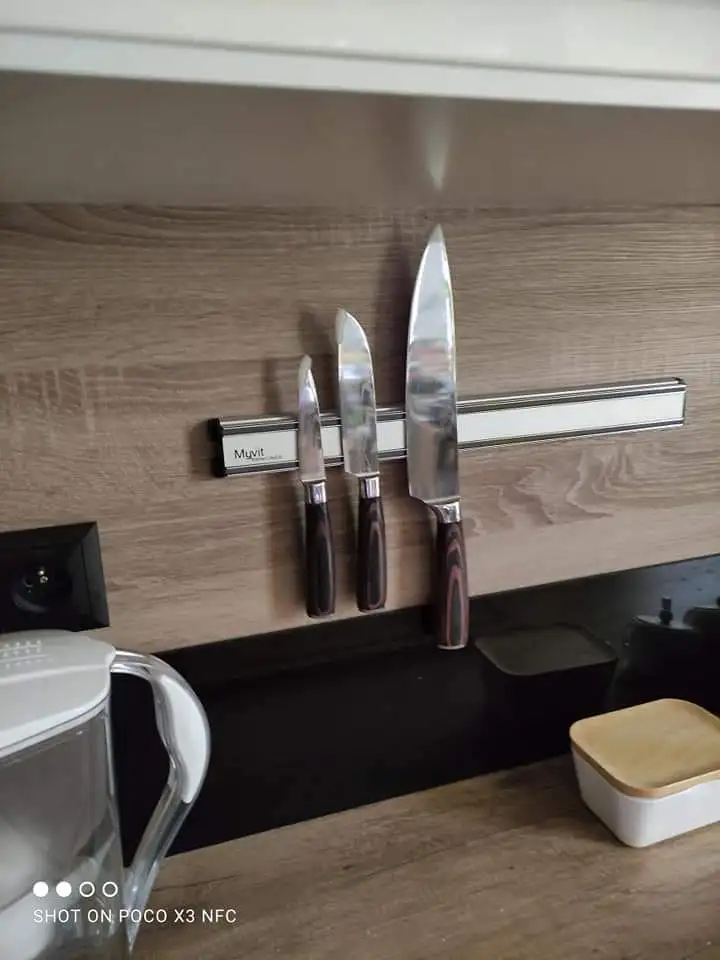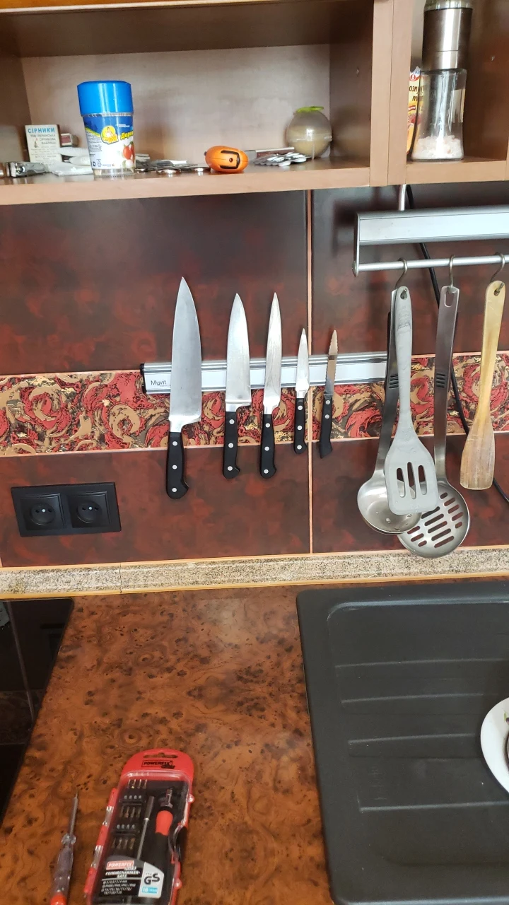 Не стесняйтесь покупать на AliExpress Доставка: 13dni Магнитная полоса для хранения кухонных ножей. Таким образом, по всей видимости, нет лезвий и безопаснее, чем ящик. Размер: 40 см. В комплект входит винтовое крепление, я сделал для двусторонней ленты zamocowalam, не просверливать и хорошо держит очень хорошее качество изготовления, рекомендую;)