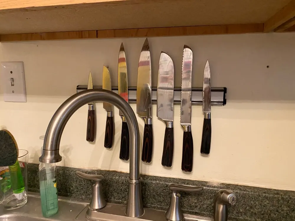Магнитит ножи хорошо. Выглядит неплохо. Доставка относительно быстрая. Качество материалов нормальное. Крепеж в комплекте.