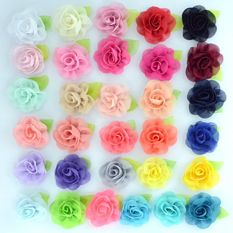 2,4 дюйма, 10 шт.лот, шифоновые цветы в виде листьев, розы для детей, аксессуары для волос для девочек, искусственный цветок, декор для букета, цветок для волос