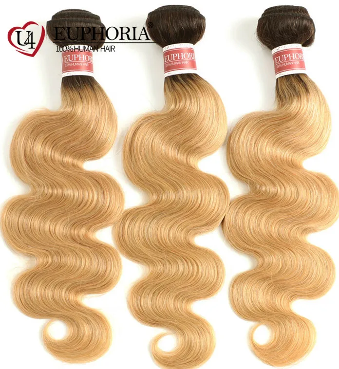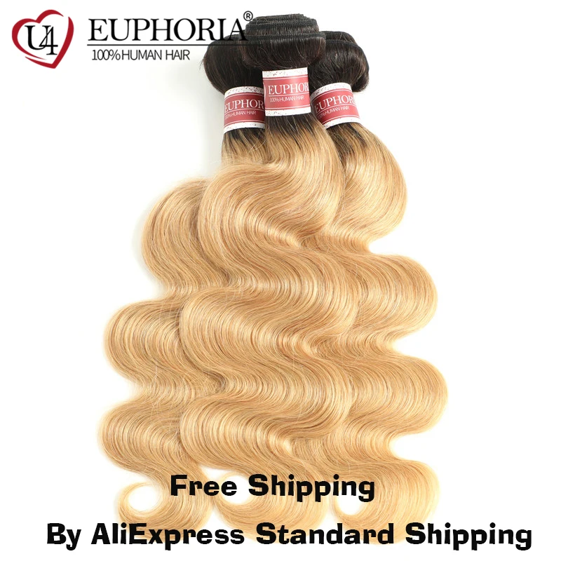 Объемные волнистые волосы, 3 пряди, Омбре, красный край, бразильские волосы 9A Remy, 100% человеческие волосы, 134 шт, пряди, плетение, для наращивания, 8-26 дюймов, EUPHORIA