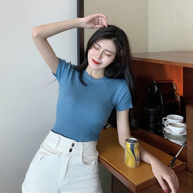 Футболка женская трикотажная, с круглым вырезом и коротким рукавом