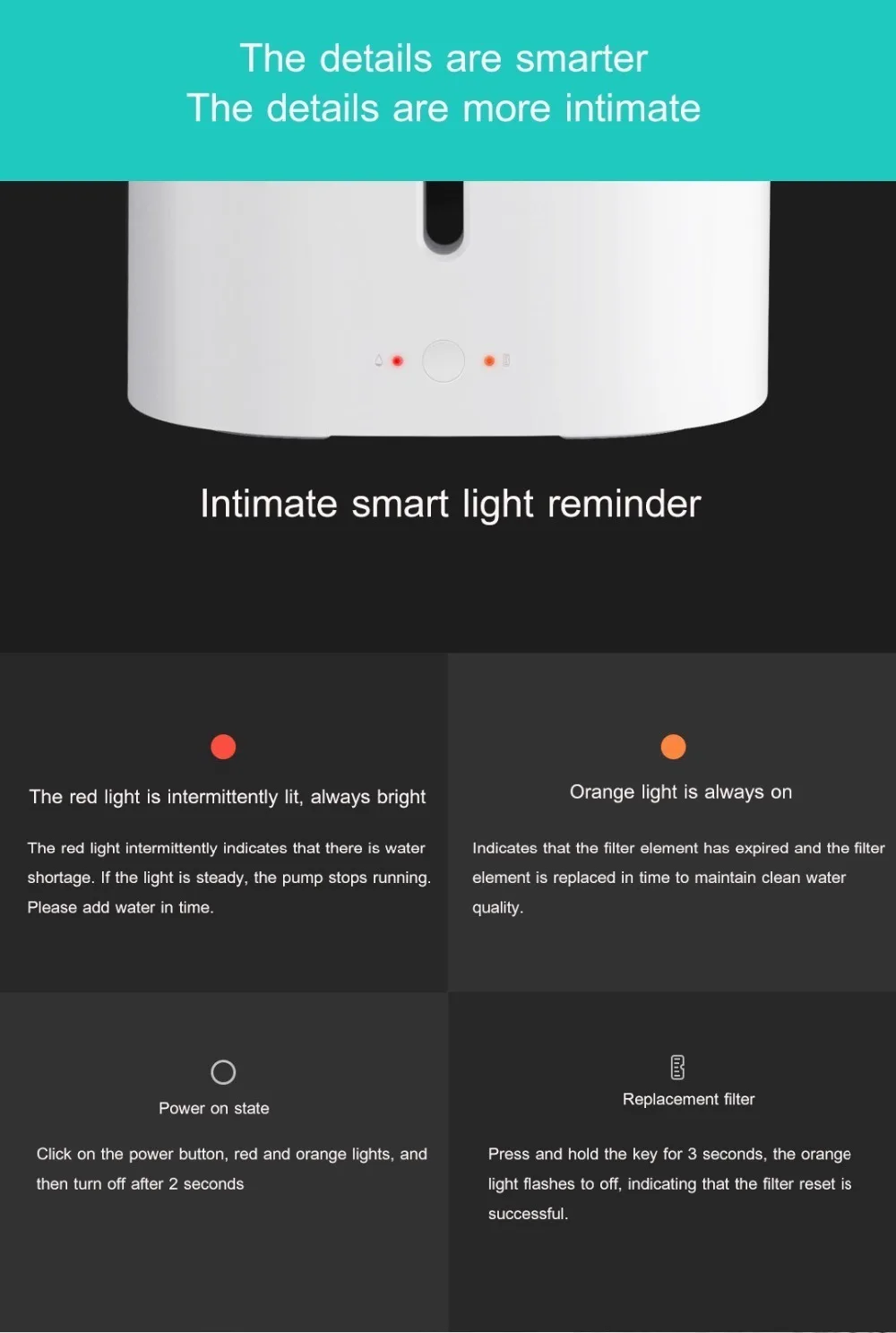 Подробная информация о продукте:Вход: DC 5 в 500 мАНоминальная мощность: 2,5 ВтМаксимальная мощность: 2LРазмер продукта: 190 мм * 190 мм * 174 ммВес нетто: 1,2 кгМатериал изделия: АБС-пластикРабочая температура: 0-50 градусовРабочая влажность: 10%-80%Длина линии адаптера: 1,2 мПримечание:Фильтр инструкции по замене1. Фильтрующие Картриджи рекомендуется менять каждые 30 дней, чтобы достичь хороших результатов фильтрации2. Фильтр может быть немного порошком, когда он покинет завод, это нормально. Новый фильтр рекомендуется использовать после замачивания в чистой воде в течение 2 минут.3. Нажмите и удерживайте кнопку фильтра в течение 3 секунд после замены фильтра, пока оранжевый свет не гаснет