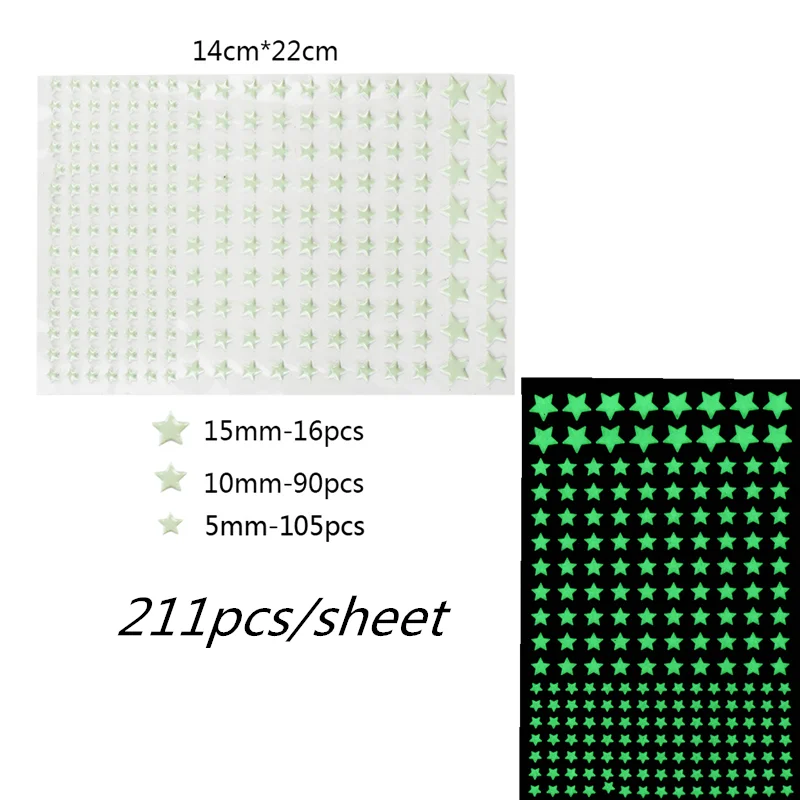 Заказал 2 упаковки. Звезды крошечные, но соответствуют тому, что было рассчитано во время покупки. Клей не очень хорош и будет падать с стены, так как дни проходят.