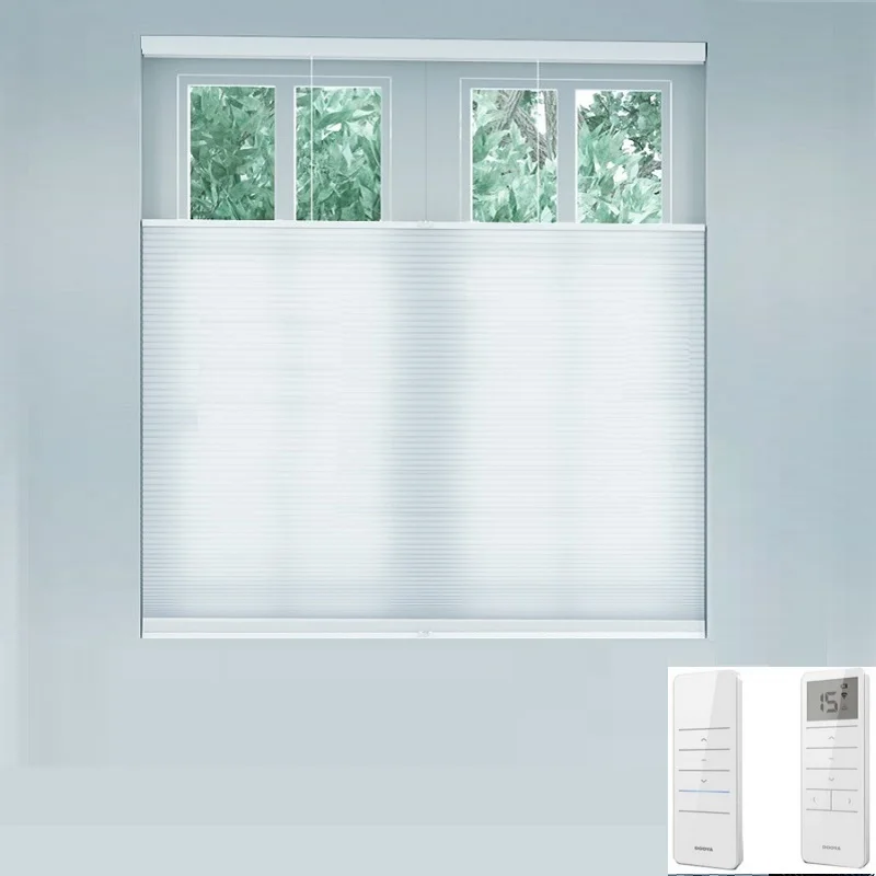 Электрические сотовые жалюзи сотовые оттенки окна Плиссированные Шторы (сверху вниз снизу вверх) изготовленный на заказ размер дистанционное управление провод подключенный Мотор мощность DC110 -240V 25 мм тканевый светильник фильтрация или затемнение