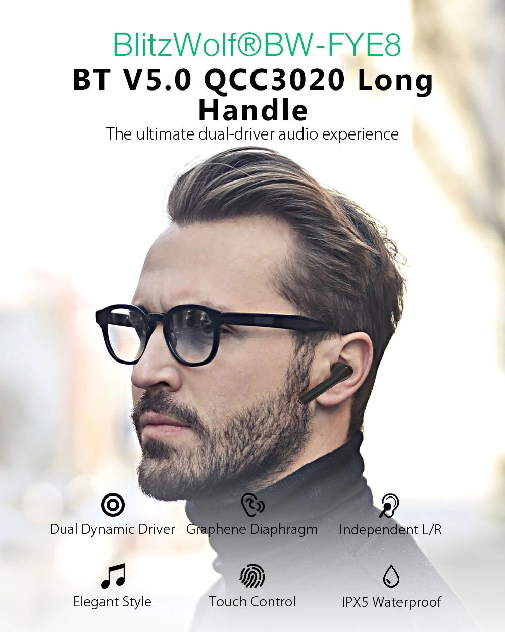 TWS-наушники BlitzWolf QCC3020, беспроводные, графеновые, с двойным динамическим драйвером, сенсорным управлением, спортивные, гарнитура для звонков