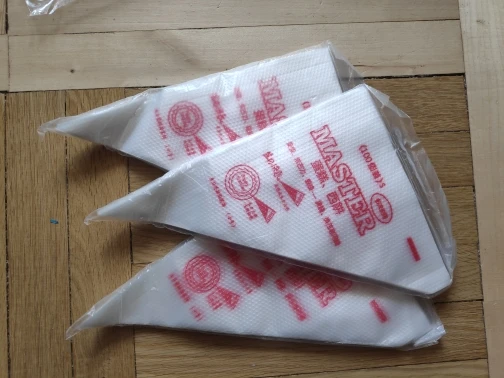 Доставка заняла два месяца, судя по треку таможня Китая постоянно возвращала товар обратно на склад по какой-то причине. Но кондитерские мешки всё-таки прибыли. Пользуюсь такими постоянно, в данном магазине было довольно выгодно их приобретать. Все полностью соответствует описанию. Лично я использую маленькие мешки для декорирования печенья. Для тортов лучше всё-таки брать размер побольше.