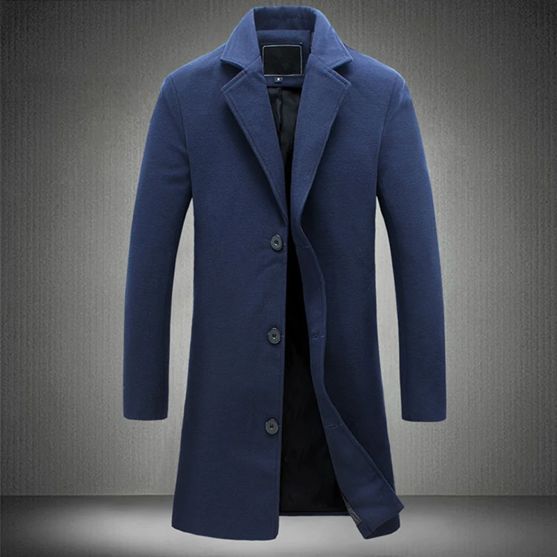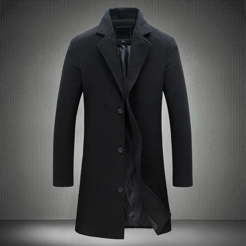 Тренч мужской длинный в Корейском стиле, приталенное шерстяное пальто в стиле оверсайз, повседневная черная верхняя одежда с длинным рукавом, 4xl 5xl, Осень-зима