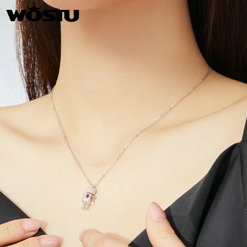 WOSTU колье из настоящего серебра 925 пробы с ажурным сердечком, дл...