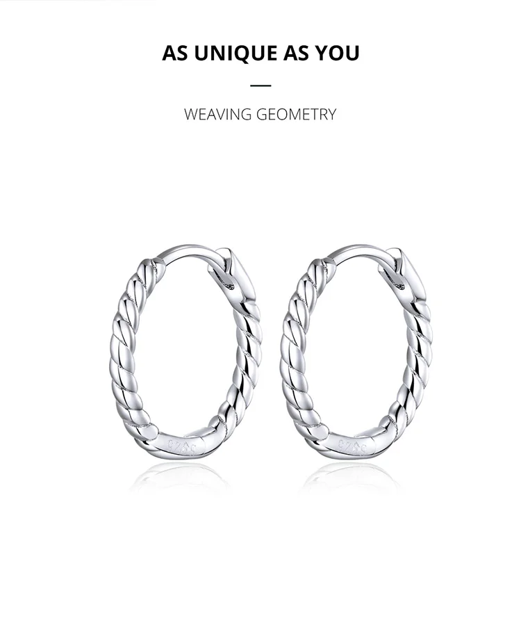 Женские серьги-кольца из серебра 925 пробы, с геометрическим узором