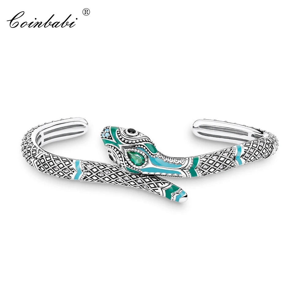 Женский браслет из серебра 925 пробы, с синей змеей, в богемном стиле, 2020