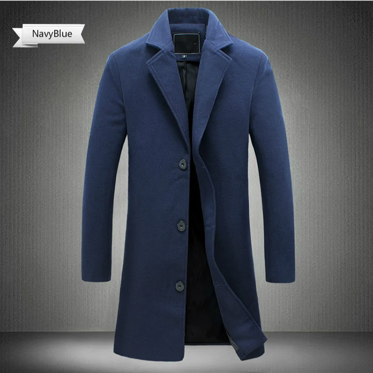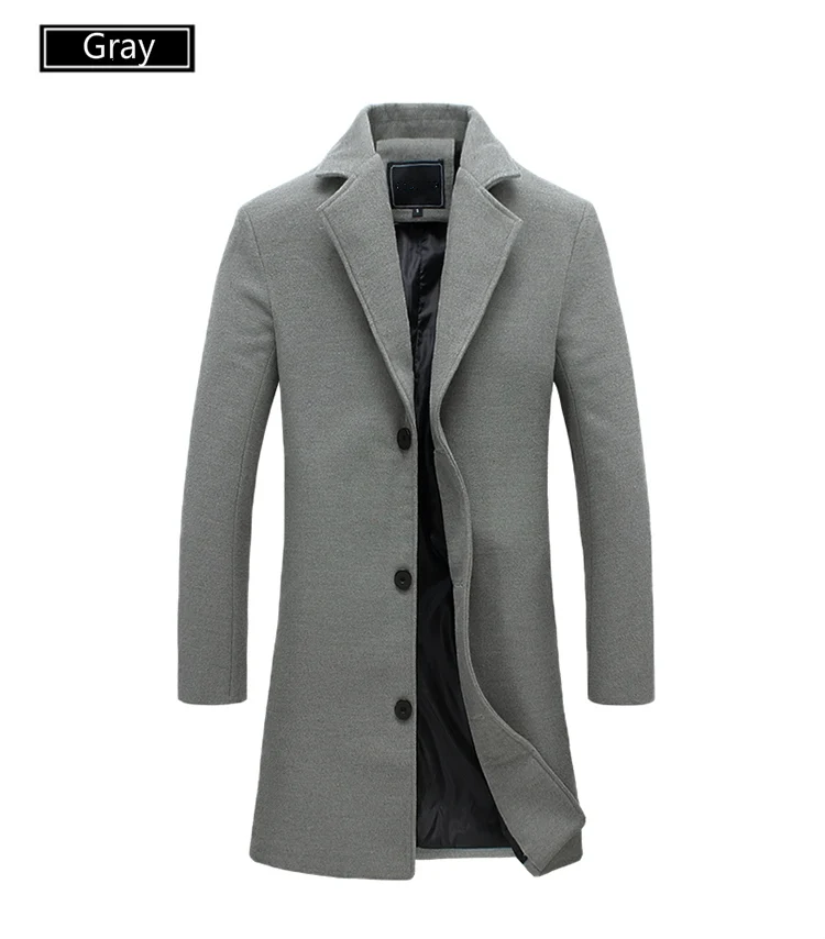 Тренч мужской длинный в Корейском стиле, приталенное шерстяное паль...