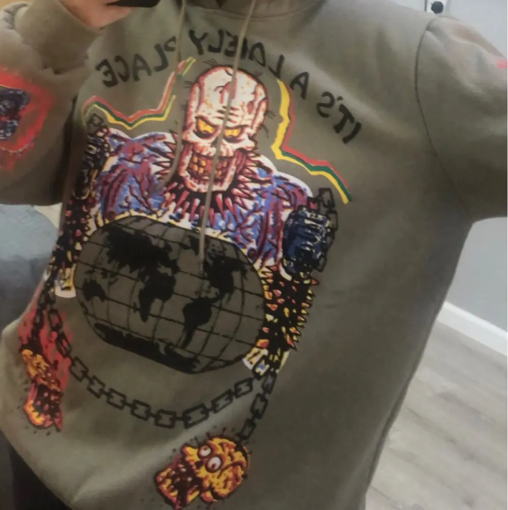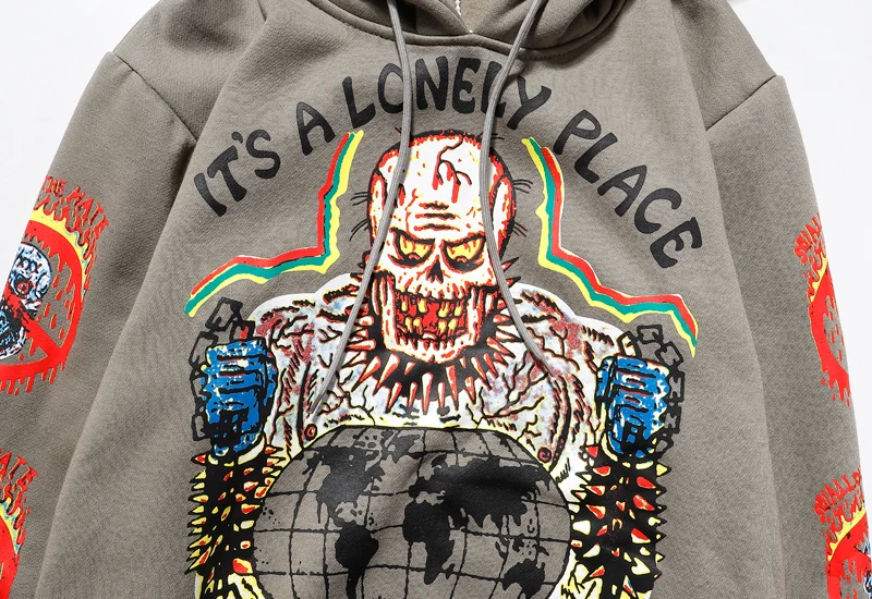 Флисовая Мужская толстовка Kanye, свободная толстовка в стиле Харадзюку, с принтом черепа и граффити, толстовка с капюшоном в стиле Харадзюку, 2020